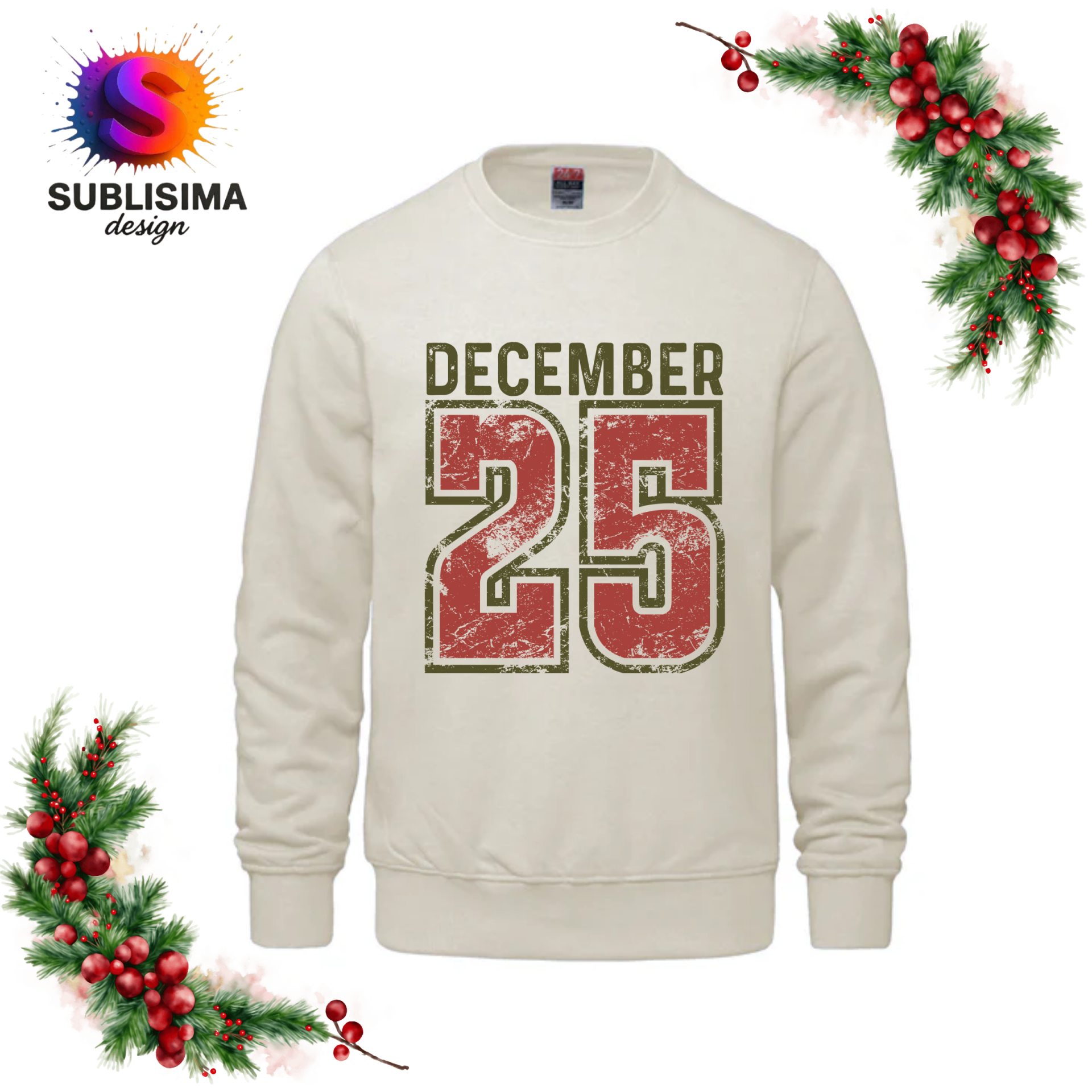 Ouaté à col rond - Noël " December 25 "