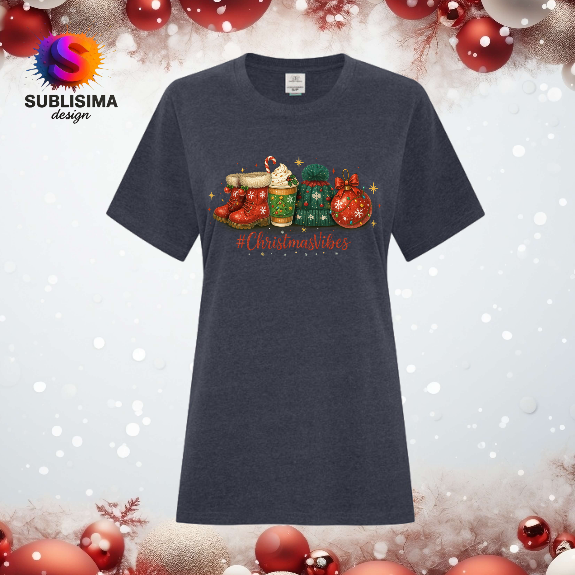 Jolie chandail à manches courtes avec imprimé "Christmas Vibes".